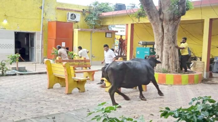 इस दौरान कर्मचारियों ने चिल्लाने की आवाज सुनी और फिर बाहर की ओर भागे। जैसे ही उन्होंने भैंस को पकड़ने की कोशिश की। भैंस ने उनके ऊपर हमला कर दिया। किसी तरह कर्मचारियों ने जान बचाई। इसके बाद भैंस आॅफिस के गैलरी में घुसकर खिड़कियों के शीशे तोड़ दिए। फिर थोड़ी देर में कर्मचारियों के कमरे में घुस गई।