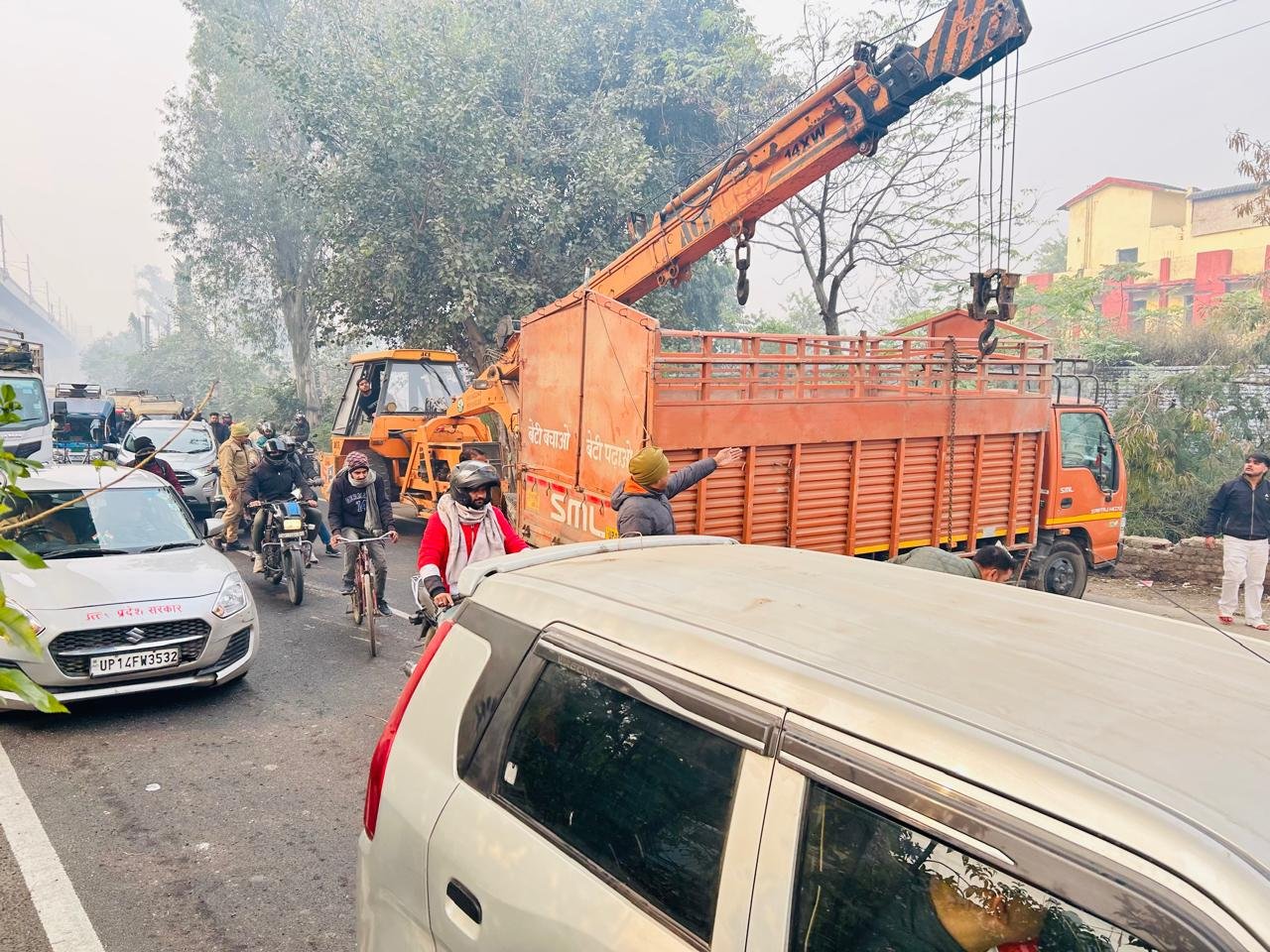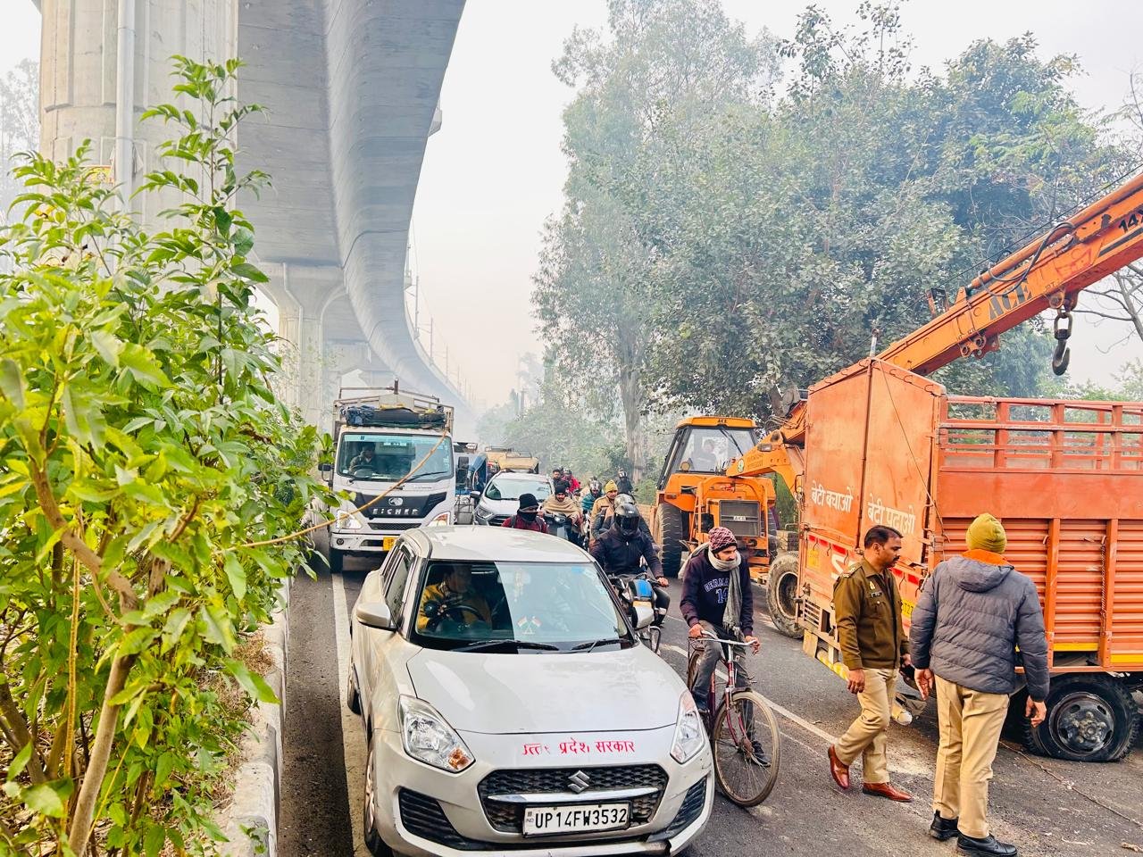 Meerut: घने कोहरे के चलते दिल्ली–मेरठ मार्ग पर पलटा कैंटर