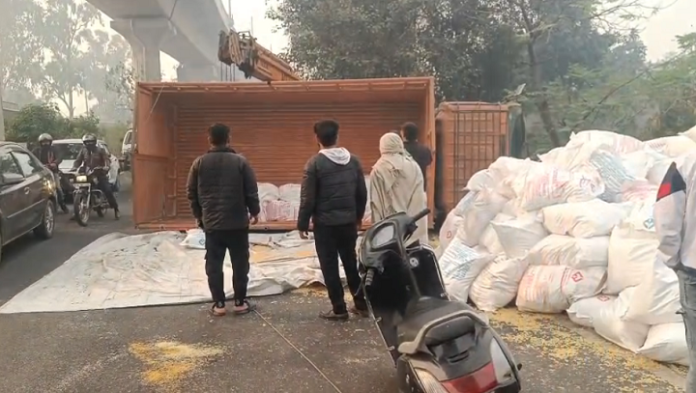 HomeAccident NewsMeerut: घने कोहरे के चलते दिल्ली–मेरठ मार्ग पर पलटा कैंटर