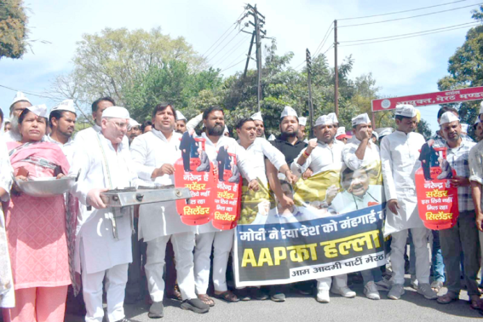 बढ़ती महंगाई और सिलेंडर की कीमतों का विरोध, मेरठ में आम आदमी पार्टी ने किया प्रदर्शन
