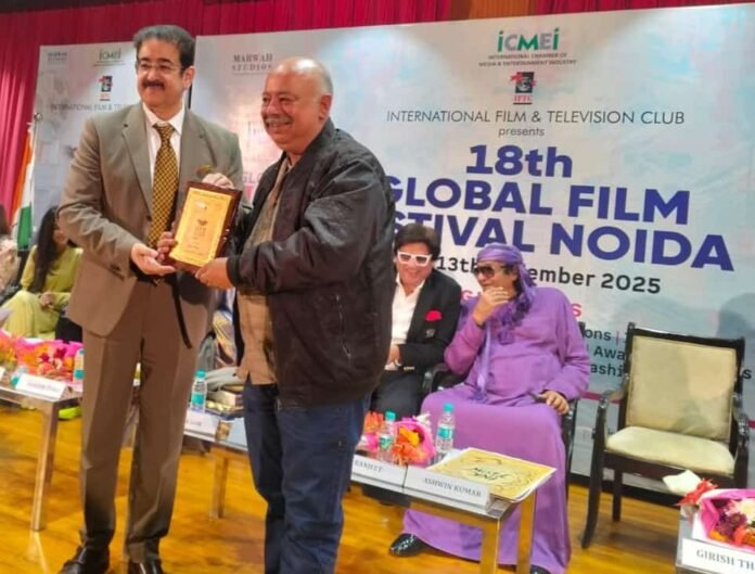 नोयडा। इंटरनेशनल फ़िल्म ओर टेलीविजन क्लब के सौजन्य से 18 ग्लोबल फ़िल्म फेस्टिवल मारवाह स्टूडियो फ़िल्म सिटी नोएडा में 11 से 13 दिसंबर तक आयोजित किया गया। समारोह में मेरठ निवासी फ़िल्म एंड टी.वी कलाकार गिरीश थापर को सम्मानित किया गया।