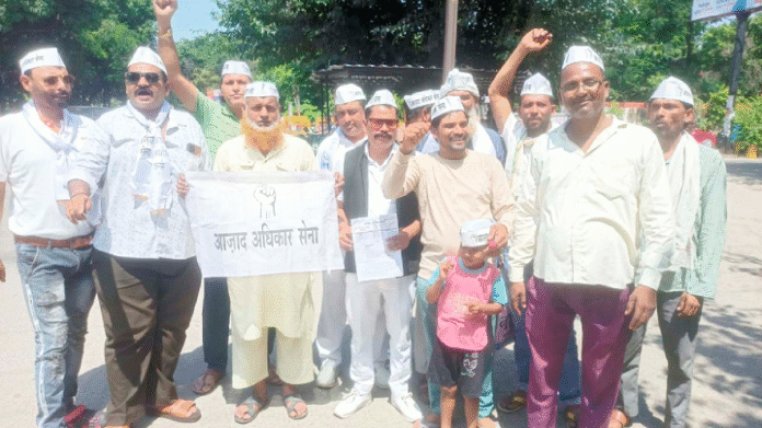 आजाद अधिकार सेना ने कमिश्नरी चौराहे पर प्रदर्शन कर पुराने मामले को खत्म करने की उठाई मांग।