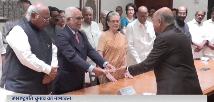 नामांकन पत्र के चार सेट दाखिल किए गए हैं, जिन पर कांग्रेस संसदीय दल की प्रमुख सोनिया गांधी, लोकसभा में नेता प्रतिपक्ष राहुल गांधी, राज्यसभा में नेता प्रतिपक्ष मल्लिकार्जुन खरगे, द्रमुक के तिरुचि शिवा समेत 160 सांसदों ने बतौर प्रस्तावक व अनुमोदक हस्ताक्षर किए हैं। सुदर्शन रेड्डी उच्चतम न्यायालय के पूर्व न्यायाधीश और गोवा के लोकायुक्त रहे हैं।