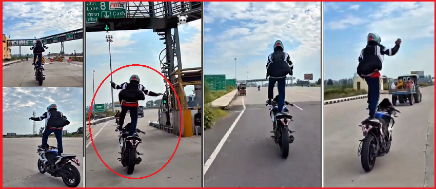 शारदा रिपोर्टर मेरठ। मेरठ-बिजनौर नेशनल हाईवे पर एक युवक का बाइक स्टंट करते हुए वीडियो सोशल मीडिया पर वायरल हो रहा है। वीडियो में युवक मवाना थाना क्षेत्र के भैंसा टोल के पास बाइक पर खड़े होकर स्टंट करता नजर आ रहा है। युवक स्टंट कर अपनी और रोड पर चलने वाले राहगीरों की जान को जोखिम में डाल रहा है। युवक को किसी का जरा भी खौफ नहीं है। पुलिस का कोई ख़ौफ़ नहीं।