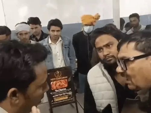 आकाश और उसके दोस्त गौरव का आरोप है कि उन्हें खाने-पीने के स्टॉल पर बीफ कोरमा का स्टीकर लगी हुई टेबल सजी मिली। उन्होंने देखते ही वीडियो बनाना शुरू कर दिया। वीडियो बनाते देख कैटर्स स्टाफ ने उन्हें घेर लिया। वीडियो बनाने से मना करने लगे। आकाश ने जब मना किया तो उन्होंने उसे और उसके दोस्तों से मारपीट की।