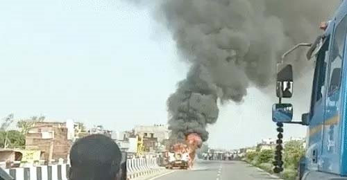 – चंद मिनट में गाड़ी जलकर राख हुई।