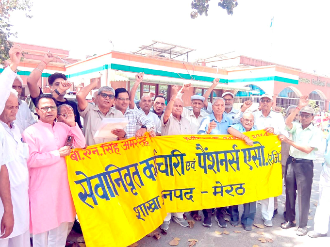 शारदा रिपोर्टर मेरठ। विभिन्न समस्याओं के समाधान की मांग को लेकर मंगलवार को सेवानिवृत्त कर्मचारी एवं पैशनर्स एसोसिऐशन उत्तर प्रदेश के दर्जनों सदस्यों ने कलक्ट्रेट पर प्रदर्शन किया। इस दौरान उन्होंने केंद्र सरकार को संबोधित ज्ञापन डीएम कार्यालय पर सौंपा।