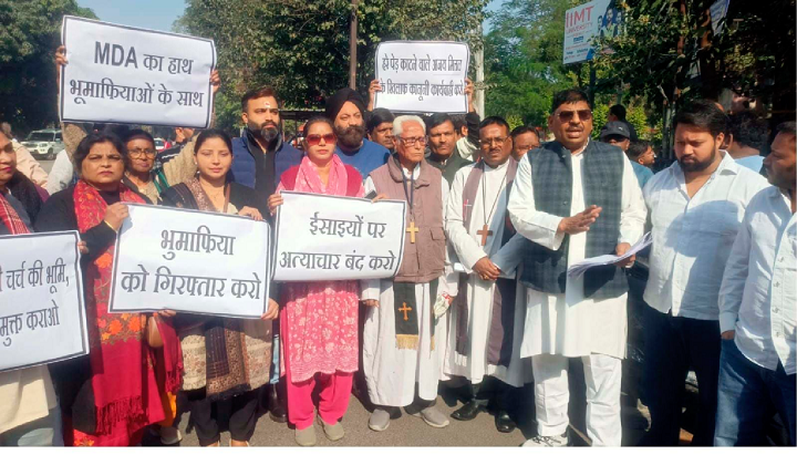 शारदा रिपोर्टर मेरठ। डेनियल एल्बर्ट और अजय मित्तल नामक व्यक्तियों पर चर्च की सम्पत्ति पर कब्जा करने और जबरन निर्माण करने के विरोध में सोमवार को ईसाई समुदाय के दर्जनों लोगों ने कलेक्ट्रेट पर प्रदर्शन किया। इस दौरान उन्होंने एक ज्ञापन डीएम कार्यालय पर सौंपते हुए समस्या के समाधान की मांग की।