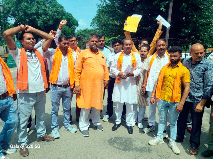 शारदा रिपोर्टर मेरठ। शुक्रवार को हिन्दू स्वाभिमान परिषद एवं गुरु गोरखनाथ गौसेवा समिति को संयुक्त तत्वाधान में आवास विकास परिषद के अधिकारियों और कर्मचारियों पर भ्रष्टाचार का आरोप लगाते हुए कमिश्नरी चौराहे पर प्रदर्शन किया। इस दौरान उन्होंने मंडलायुक्त कार्यालय पर एक ज्ञापन सौंपते हुए ऐसे अधिकारियों और कर्मचारियों पर कार्रवाई की मांग की।