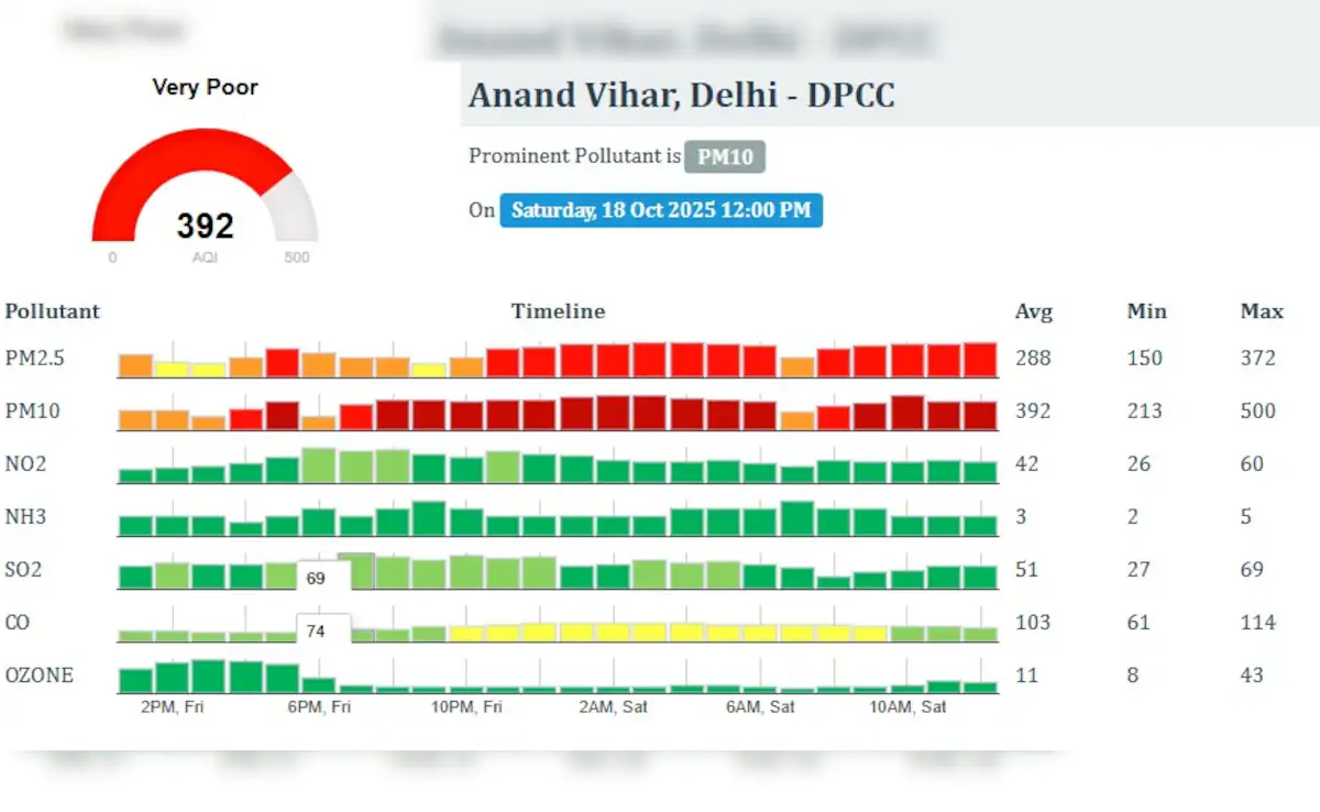 दिल्ली में प्रदूषण का स्तर लगातार बढ़ रहा है। ओखला फेज-2 में एक्यूआई 223, पूसा में 277 और मुनकद में 282 दर्ज हुआ। वहीं, वज़ीरपुर में एक्यूआई 359, बवाना में 312 और आनंद विहार में 379 तक पहुंच गया, जो सीधे तौर पर ‘गंभीर’ श्रेणी की चेतावनी है। गाजियाबाद के वसुंधरा में एक्यूआई 290 और इंदिरापुरम में 298, जबकि संजय नगर में 325 और लोनी में 351 दर्ज किया गया। पूरे जिले में औसतन वायु गुणवत्ता 300 के पार है, जिससे आम नागरिकों को सांस लेने में दिक्कत हो रही है।