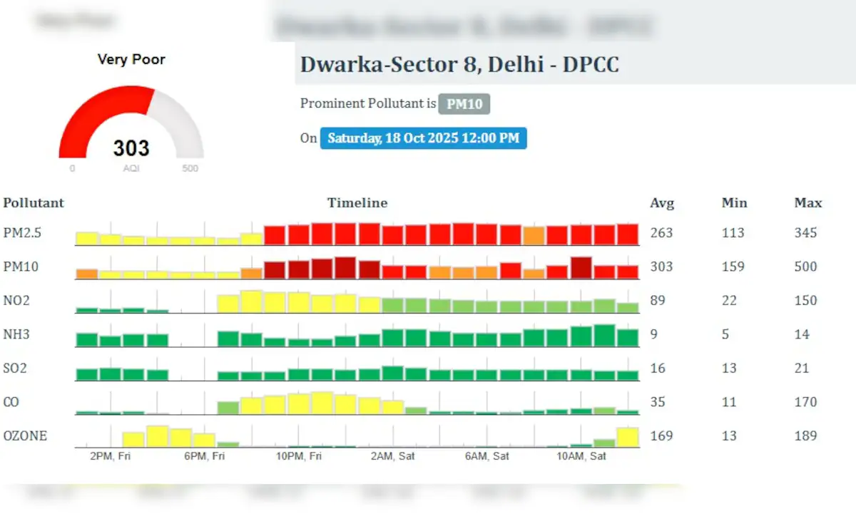 एजेंसी, नई दिल्ली: दिल्ली-NCR की हवा बेहद जहरीली होते हुए नजर आ रही है, AQI लाल निशान के पार पहुंच गया हैं। दिल्ली-एनसीआर में वायु प्रदूषण का स्तर लगातार खतरनाक होता जा रहा है। दिल्ली के साथ ही नोएडा का हाल भी बहुत बुरा है। ताजा आंकड़ों के अनुसार, दिल्ली, नोएडा और गाजियाबाद के कई इलाकों में एयर क्वालिटी इंडेक्स (एक्यूआई) 300 के पार पहुंच गया है, जो ‘बहुत खराब’ श्रेणी में माना जाता है।