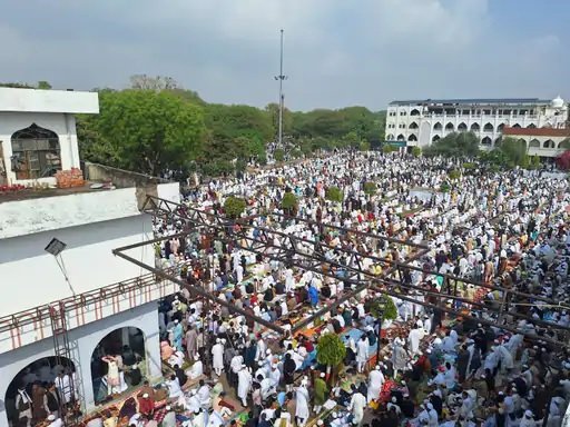– ऐशबाग ईदगाह पर 50 हजार से ज्यादा नमाजी, मौलाना बोले सड़कों पर न करें इबादत।