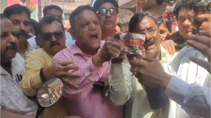 सेंट्रल मार्केट प्रकरण: खाने के पैकेट पर सपा का पोस्टर देख भड़के व्यापारियों ने किया जमकर हंगामा