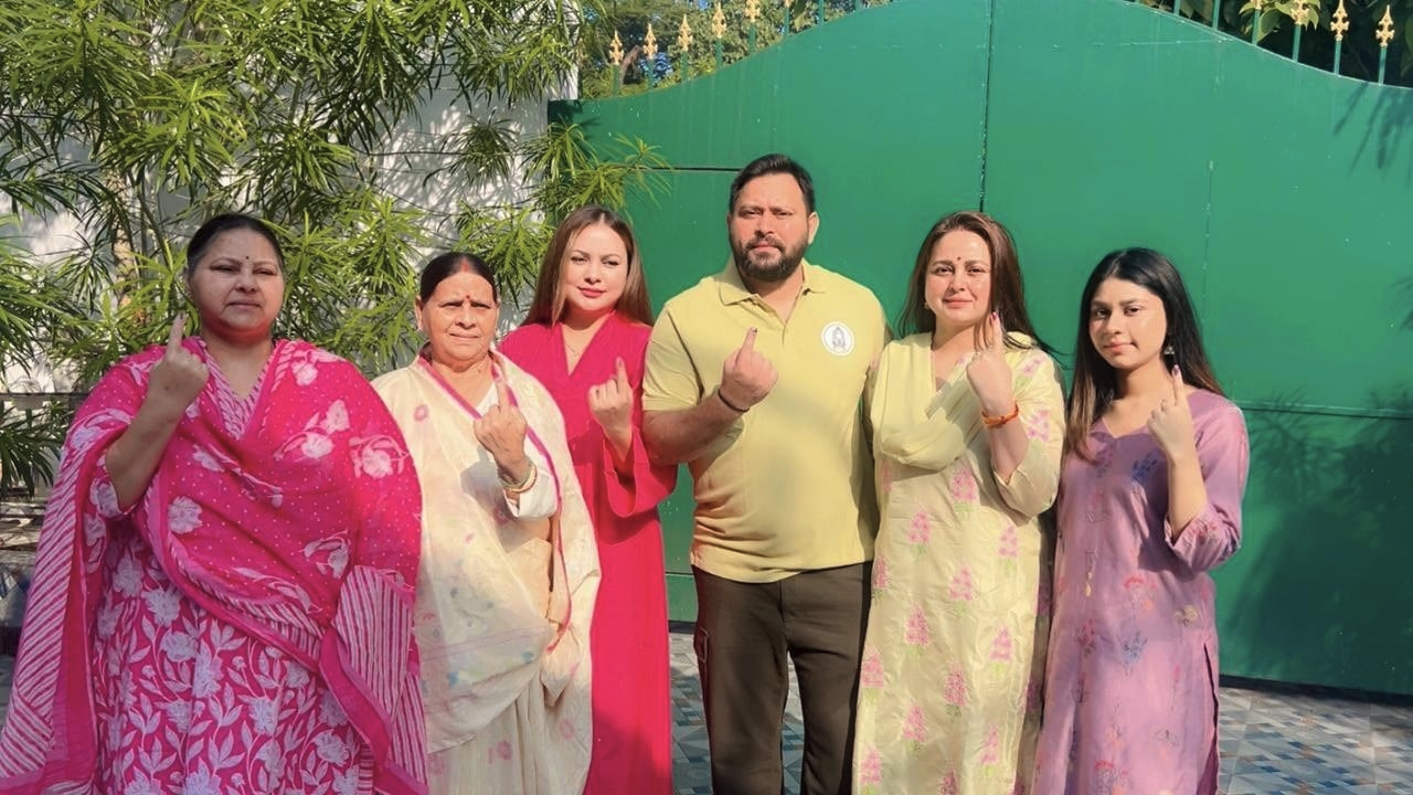 तेजस्वी यादव ने अपने परिवार के साथ डाला वोट.