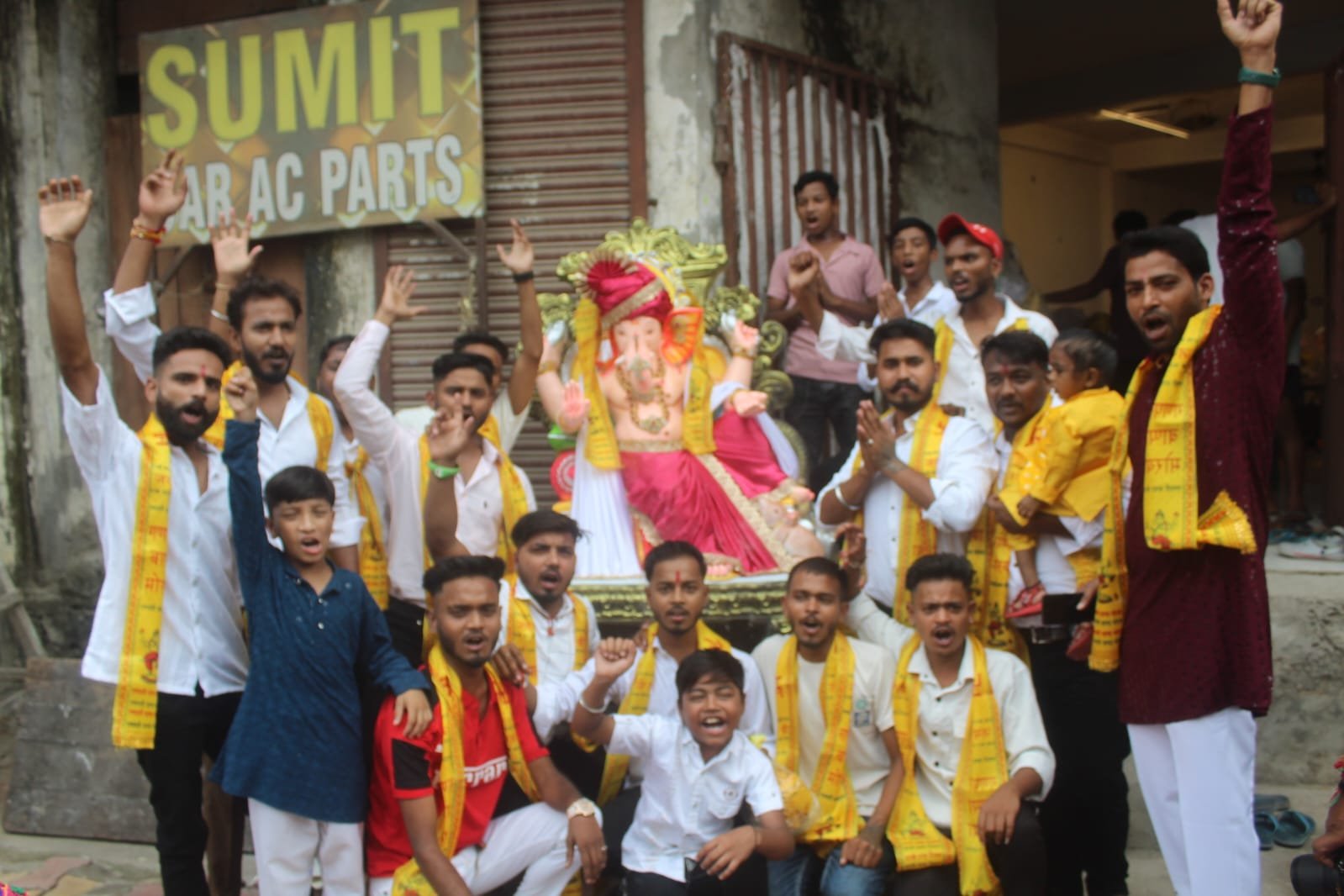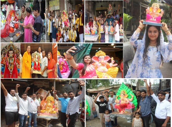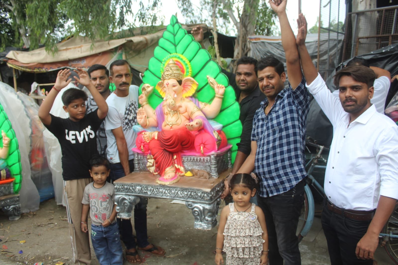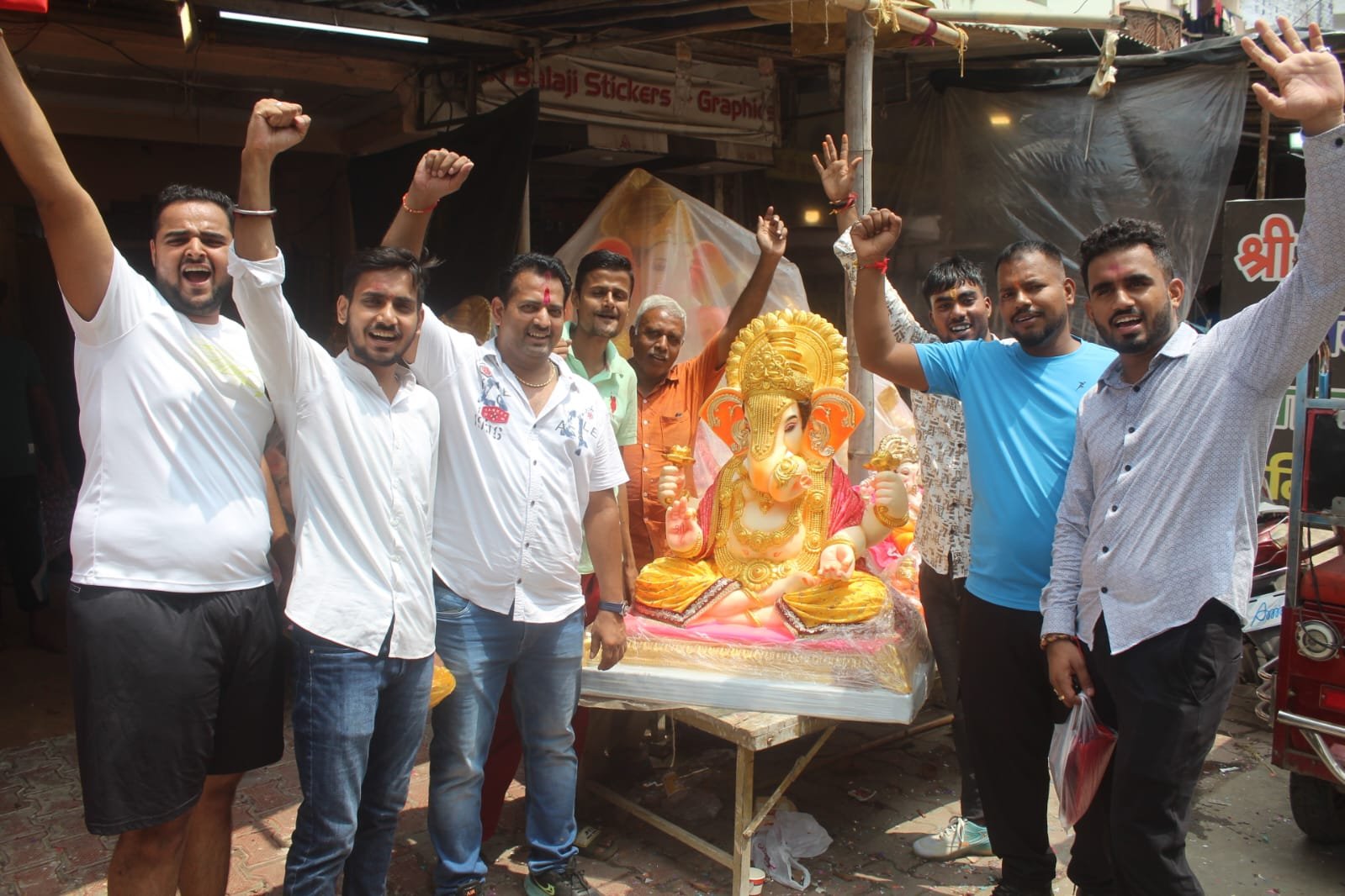थापर नगर से गणपति स्थापना के लिए गणपति लेकर जाते लोग