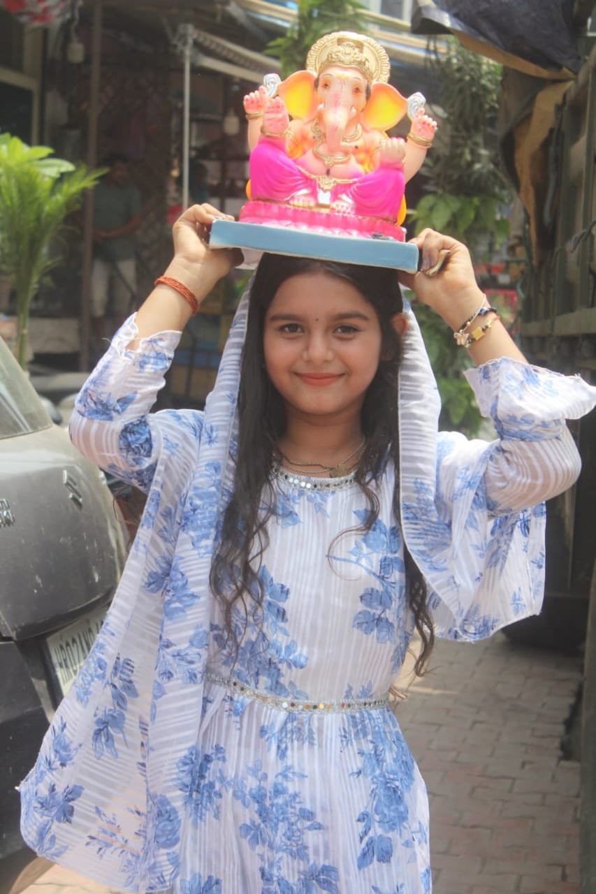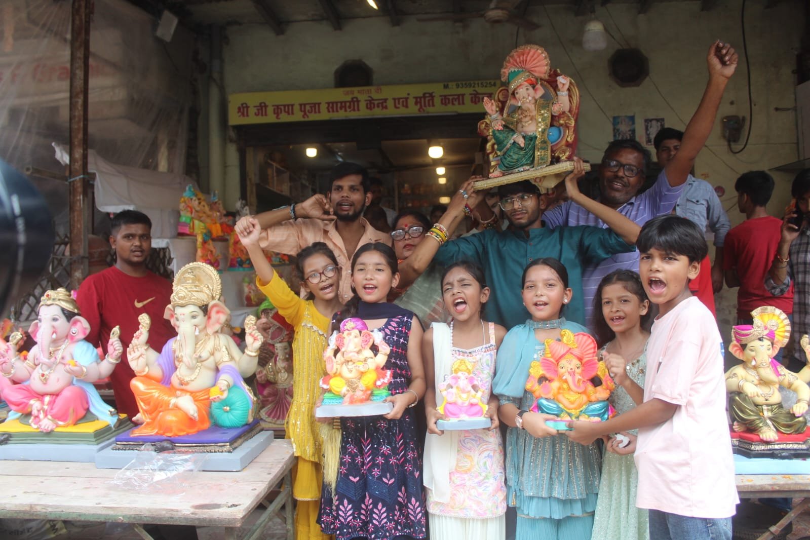 थापर नगर से गणपति स्थापना के लिए गणपति लेकर जाती एक बच्ची