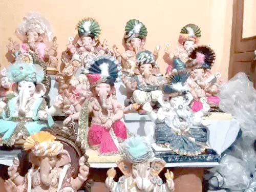 इको फ्रेंडली गणेश: मार्केट में गणेश जी की मूर्तियों की विविधता देखने को मिल रही है। पगड़ी वाले गणेश, मुकुट वाले गणेश, सिंहासन गणेश, गाय गणेश, चौकड़ी गणेश, कुर्ता गणेश, तिरुपति बालाजी, बड़े कान वाले गणेश और तकिया गणेश जैसी मूर्तियाँ ग्राहकों को आकर्षित कर रही हैं। थापर नगर के दुकानदारों का कहना है कि इन मूर्तियों की माँग हर साल बढ़ती है।
