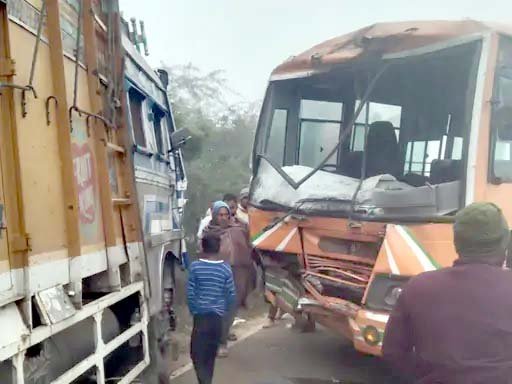 हरदोई। गुरुवार सुबह घने कोहरे के कारण एक बड़ा सड़क हादसा हो गया। उन्नाव-कटरा हाईवे पर दिल्ली से हरदोई जा रही उत्तर प्रदेश राज्य परिवहन निगम की एक रोडवेज बस सामने से आ रहे ट्रक से टकरा गई। इस दुर्घटना में बस चालक और परिचालक सहित कुल आठ यात्री घायल हो गए, जिनमें से पांच की हालत गंभीर बताई जा रही है।