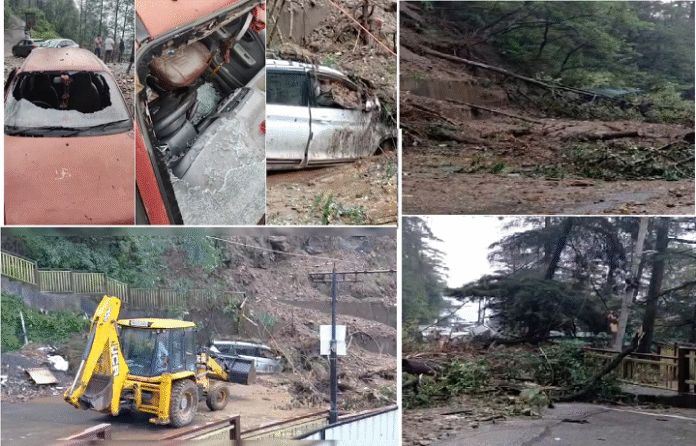 हिमाचल प्रदेश में बारिश से तबाही: उत्तराखंड के साथ ही हिमाचल प्रदेश में भी भारी बारिश से तबाही का कहर जारी है. राजधानी शिमला में सोमवार देर रात हुई भारी बारिश की वजह से जगह-जगह लैंडस्लाइड (Himachal Landslide) की घटनाएं हुईं और पेड़ गिरे है. शिमला शहर के हिमलेंड, बीसीएस , महेली, ऒर अन्य जगहों पर भी भयानक लैंडस्लाइड हुआ है. बड़ी संख्या में पेड़ गिरने की वजह से 2 दर्जन के करीब गाड़िया दब गई हैं, जिनको निकालने का काम किया जा रहा हैं। हालांकि, नेशनल हाईवे को खोलने का काम भी जारी हैं. लेकिन भारी लैंडस्लाइड की वजह से ट्रैफिक ठप हो गया है।