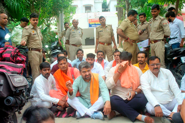धरने पर बैठे हिंदूवादी नेता सचिन सिरोही, धमकी मामले में पुलिस द्वारा कार्रवाई न करने से दिखे नाराज