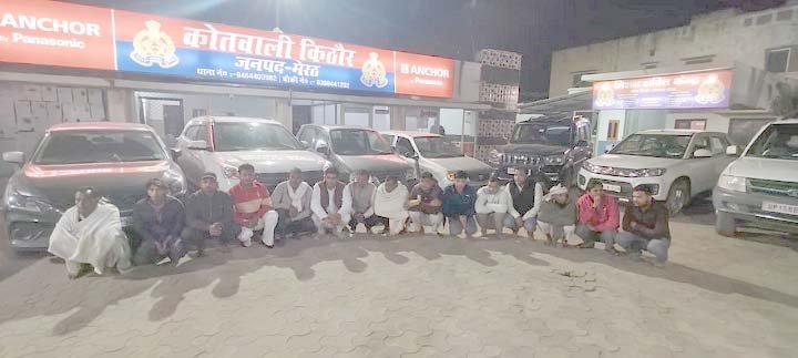 इसी दौरान ड्यूटी पर मौजूद इंस्पेक्टर क्राइम अरविंद कुमार और पुलिस टीम ने उन्हें रोकने की कोशिश की तो आरोपियों ने पुलिस कार्य में बाधा डालनी शुरू कर दी। इसके बाद किठौर पुलिस ने तुरंत घेराबंदी करते हुए 15 लोगों को मौके से हिरासत में ले लिया। पुलिस ने हुड़दंग में इस्तेमाल हो रही 8 लग्जरी गाड़ियां भी कब्जे में लेकर थाने भेज दी हैं।