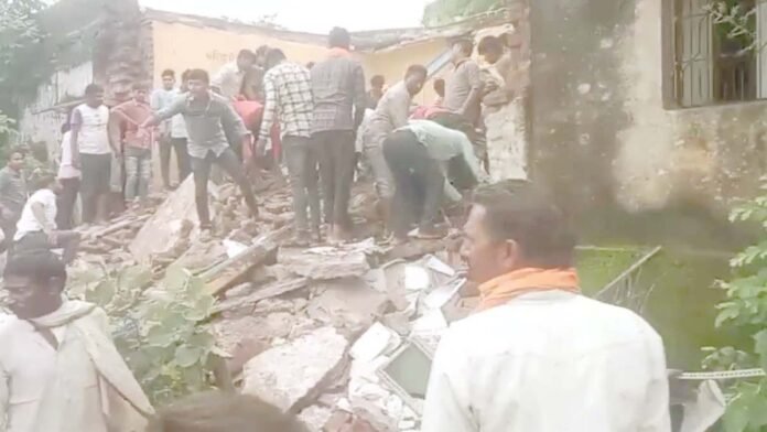 झालावाड़। जिले के मनोहर थाना क्षेत्र के पिपलोदी गांव में एक दर्दनाक हादसा हो गया है। यहां के राजकीय उच्च प्राथमिक विद्यालय के भवन की छत गिर गई है। इस हादसे में अभी तक मिली जानकारी के मुताबिक सात बच्चों की मौत हो गई है, जबकि 37 बच्चे मलबे के नीचे दब गए हैं। फिलहाल मौके पर राहत और बचाव का कार्य किया जा रहा है। बच्चों को मलबे से निकालने के लिए जेसीबी की मदद ली जा रही है। वहीं घायल बच्चों को मनोहर थाना सीएससी में लाया जा रहा है। जानकारी के मुताबिक भारी बारिश की वजह से स्कूल की छत गिर गई, जिससे यह हादसा हो गया।
