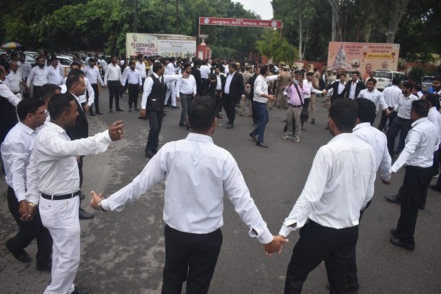 - मानव श्रृंखला से वकीलों ने जताया विरोध।