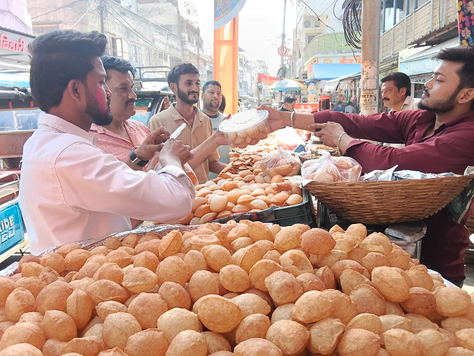 - पकवानों को खरीदने के लिए बाजारों में उमड़ रही लोगों की भीड़,