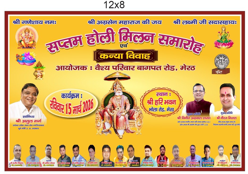 शारदा रिपोर्टर मेरठ। वैश्य परिवार, बागपत रोड, मेरठ के तत्वाधान में श्री हरि भवन, भोला रोड पर सप्तम होली मिलन कार्यकम एवं निर्धन कन्या विवाह का आयोजन किया गया।