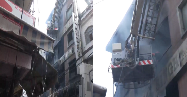 पांच मंजिला इमारत में लगी भीषण आग: जिस इमारत में आग लगी है, वहां पर बेसमेंट, ग्राउंड फ्लोर और स्थायी टिन की शेड बनी हुई चार मंजिलें हैं। बेसमेंट, ग्राउंड फ्लोर और फर्स्ट फ्लोर पर कपड़ों और कॉस्मेटिक की दुकानें हैं, जबकि दूसरी और तीसरी मंजिल पर लोग रहते हैं। आग लगते ही दो लोग इमारत से नीचे कूद गए थे। इस वजह से उनको भी चोट आई है। इलाज के लिए उनको भी अस्पताल में भर्ती कराया गया है। आग बुझाने की कोशिश के साथ ही रेस्क्यू ऑपरेशन लगातार जारी है। हालांकि, आग लगने के सटीक कारण का फिलहाल पता नहीं चल पाया है।