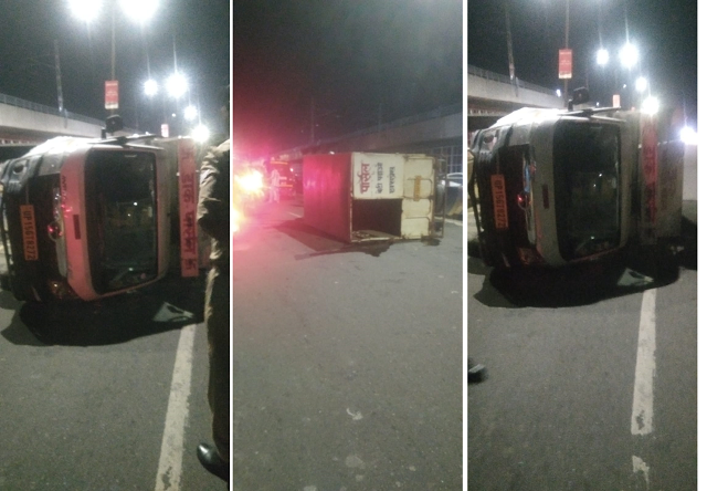 कैंटर पहले बांयी ओर की रेलिंग से टकराई और फिर दाहिनी ओर की रेलिंग से टकराकर फ्लाईओवर पर ही पलट गई। हादसे में विक्की और राहुल गाड़ी के अंदर फंस गए। पीछे से आ रहे राहगीरों ने तुरंत मदद करते हुए दोनों को बाहर निकाला। चालक विक्की के चेहरे पर गंभीर चोट आई, जबकि परिचालक राहुल को हल्की चोटें लगीं। सूचना मिलते ही ब्रह्मपुरी और टीपीनगर थाना पुलिस मौके पर पहुंची और घायलों को बाहर निकालकर जिला अस्पताल में भर्ती कराया।
