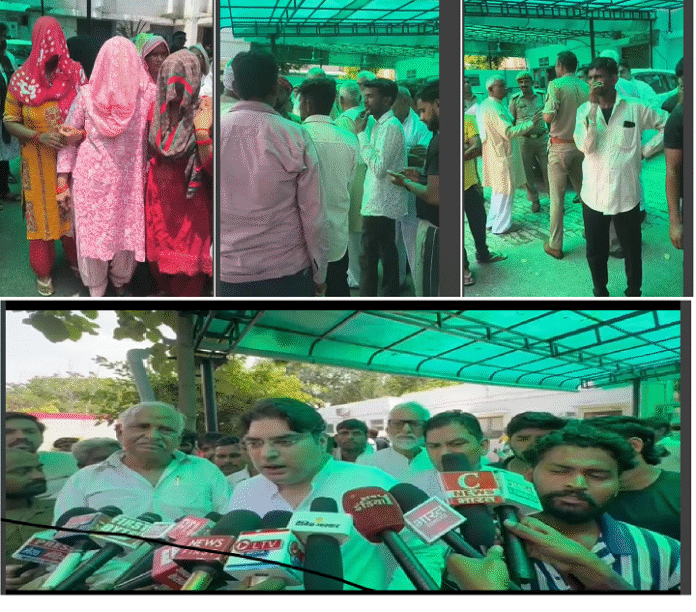 गांव जटपुरा के रहने वाले मोहित कुमार ने सैकड़ो ग्रामीण और सपा विधायक शाहिद मंजूर व सपा कार्यकर्ताओं के साथ एसएसपी आफिस पहुचकर बताया कि गांव के ही भूमाफिया फूलकुमार, अनिल, आनंद कुमार, के प्रिंस, मनोज मिश्रा, मुकेश, कार्तिक ने जमीन के विवाद में उसके पिता रामवीर पर हमला कर दिया था। पुलिस ने दोनों पक्षों का चालान कर दिया था जमानत होने के बाद रास्ते में रामवीर की मौत हो गई थी।