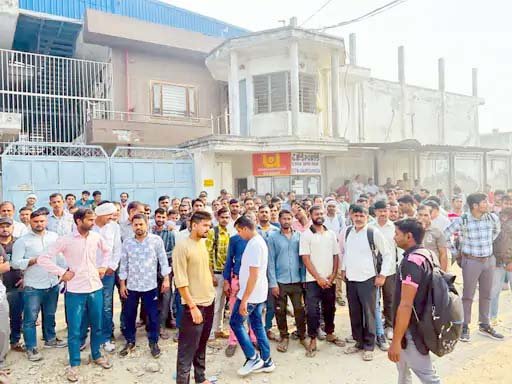 – कंपनी गेट पर धरना जारी, पुलिस तैनात; प्रबंधन से बातचीत जारी