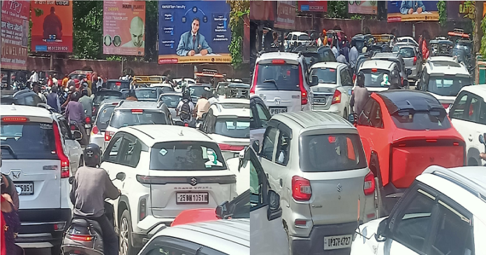 – सोमवार सुबह से ही शहर के चौराहों पर लगने लगा जाम।