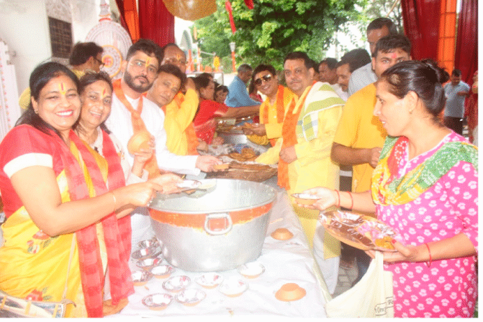 सोमवार सुबह औघड़नाथ शिव मंदिर पर प्रीमियम क्लब की ओर से लगाए गए भंडारे में सर्वप्रथम भगवान भोलेनाथ और माता पार्वती की विधि विधान से पूजा-अर्चना की गई। जिसके बाद भगवान शिव और माता पार्वती को अन्न का भोग लगाया गया। भगवान को भोग लगाने के बाद प्रीमियम क्लब के सदस्यों ने श्रद्धालुओं को हलवा, पूरी, आलू की सब्जी आदि प्रसाद वितरित किया और धर्मलाभ उठाया।