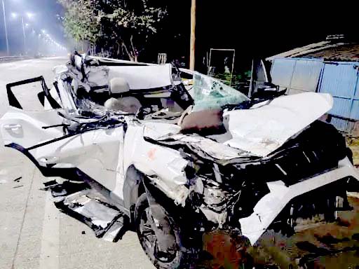– कार क्षतिग्रस्त, दो अन्य हुए घायल, चालक को झपकी आने से हुआ हादसा।