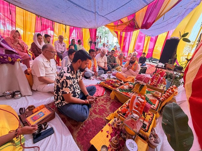 मेरठ: प्राण प्रतिष्ठा महोत्सव के दूसरे दिन शनिदेव को कराए गए चार अधिवास