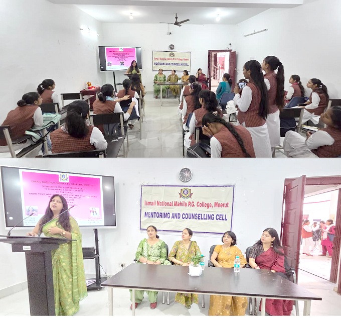 शारदा एक्सप्रेस मेरठ। शुक्रवार को इस्माईल नेशनल महिला पीजी कॉलेज मेरठ, की “मेंटरिंग एंड काउंसलिंग सेल” की ओर से प्राचार्या अनिता राठी जी के कुशल निर्देशन में एक अतिथि व्याख्यान का आयोजन “आत्म मूल्य और संबंधों” पर किया गया । अतिथि व्याख्यान का विषय “Know Your Worth – Building Healthy Relationships Without Losing Yourself” रहा, जिसका मुख्य उद्देश्य छात्राओं और श्रोताओं को अपने आत्म-मूल्य (self-worth) को समझने के लिए प्रेरित करना था।