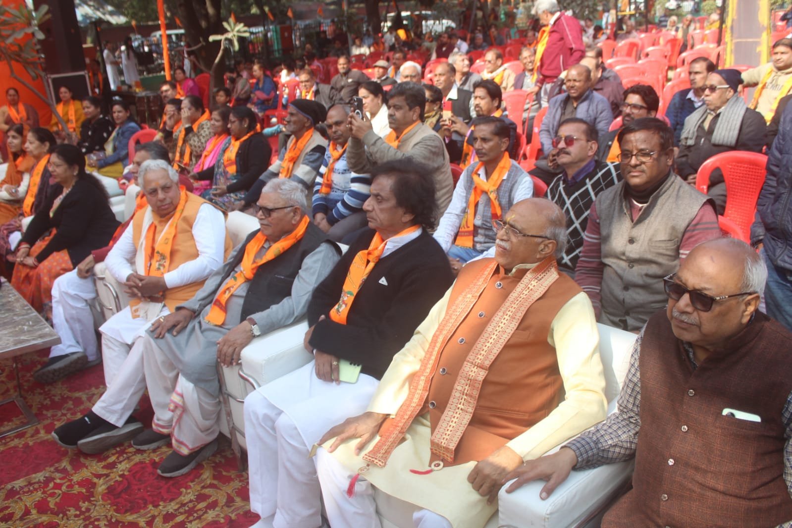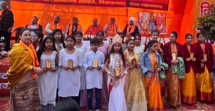 सुरेंद्र जी ( प्रांत प्रचार प्रमुख, राष्ट्रीय स्वयंसेवक संघ, मेरठ) एवं मुख्य अतिथि स्वामी कनक प्रभानन्द सरस्वती जी महाराज (पीठाधीश्वर, श्री गुरु तीर्थ पीठ, मेरठ) उपस्थित रहे।