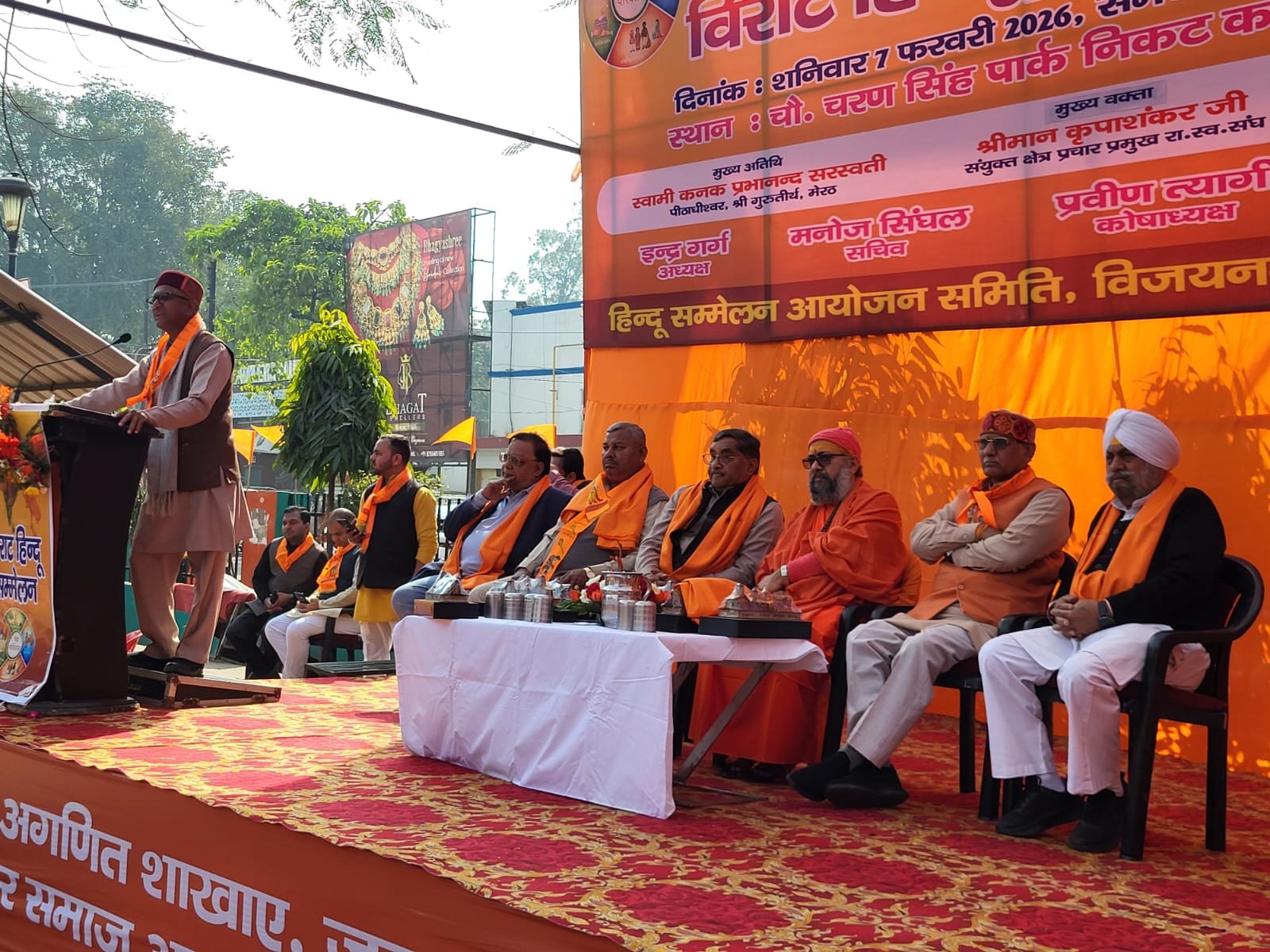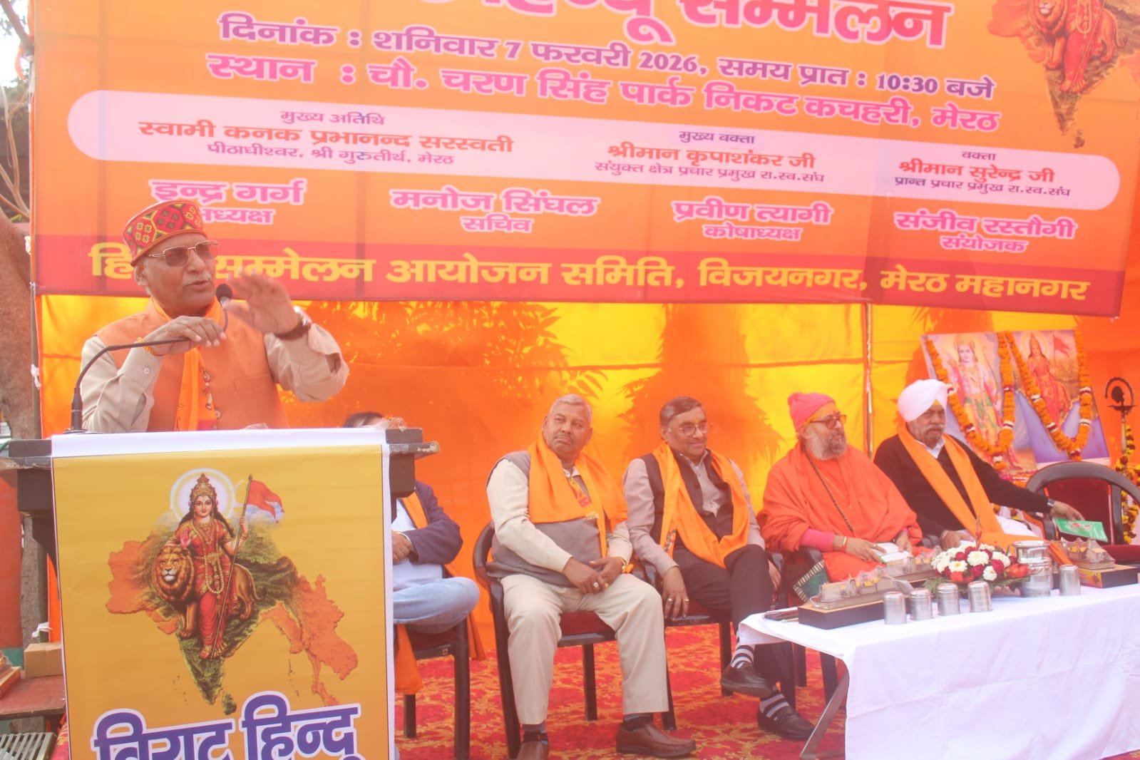 मेरठ। हिंदू समाज को संगठित करने, सनातन संस्कृति के संरक्षण तथा राष्ट्र निर्माण के संकल्प को सुदृढ़ करने के उद्देश्य से हिंदू सम्मेलन आयोजन समिति, विजयनगर (मेरठ) के तत्वावधान में आयोजित विराट हिंदू सम्मेलन शनिवार को चौधरी चरण सिंह पार्क, निकट कचहरी, मेरठ में अत्यंत भव्यता, अनुशासन एवं गरिमा के साथ संपन्न हुआ।