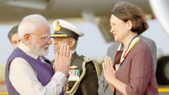 लंदन। प्रधानमंत्री नरेंद्र मोदी गुरुवार को यूनाइटेड किंगडम की दो दिवसीय यात्रा पर लंदन पहुंचे हैं। पीएम का लंदन में भव्य स्वागत किया गया। भारतीय प्रवासियों में इस मौके पर काफी उत्साह दिखा। पीएम की इस यात्रा में दोनों देशों के बीच मुक्त व्यापार समझौते (एफटीए) पर होने वाली डील पर सभी की निगाहें टिकी हुई है।