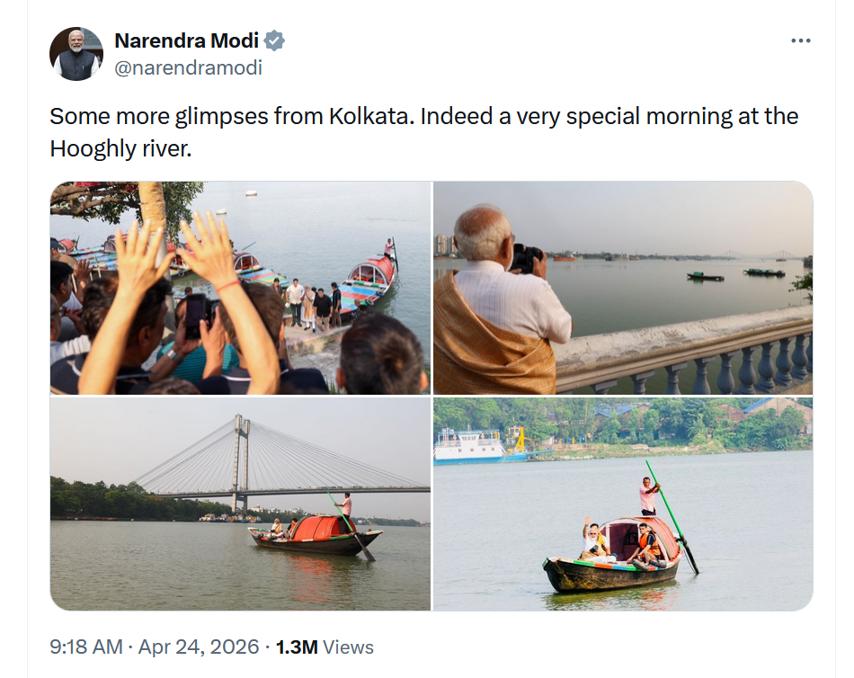 अपने सोशल मीडिया पोस्ट में पीएम ने आगे लिखा- आज सुबह कोलकाता में मैंने हुगली नदी के तट पर कुछ समय बिताया—यह माँ गंगा के प्रति आभार व्यक्त करने का एक अवसर था।