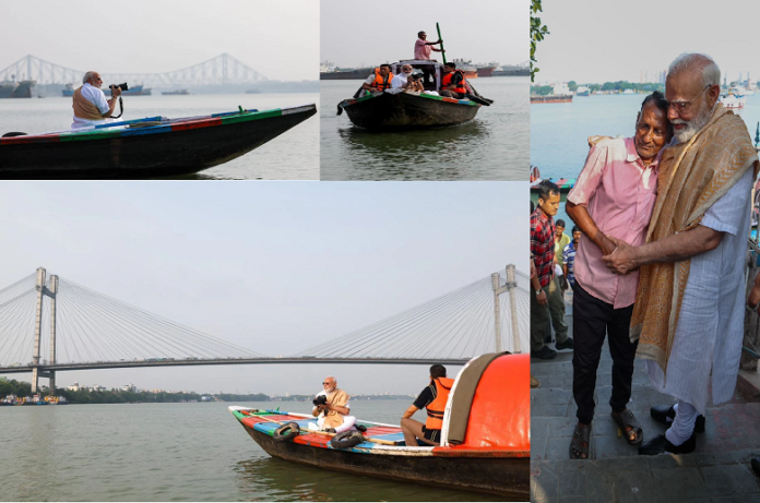 – हुगली नदी में हाथों में कैमरा लिए पीएम मोदी ने नाव की सवारी की।