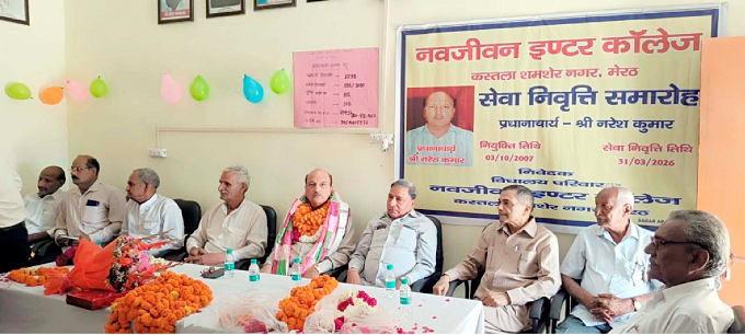 शारदा रिपोर्टर मेरठ। नवजीवन इंटर कॉलेज कस्तला शमशेर नगर के प्रधानाचार्य नरेश कुमार वर्मा को सेवानिवृत्त होने पर कॉलेज में भावभीनी विदाई दी गई। इस दौरान सभी वक्ताओं ने नरेश वर्मा के कार्यकाल की सराहना करते हुए उन्हें कुशल प्रशासक और उच्च क्षमतावान शिक्षक बताया।
