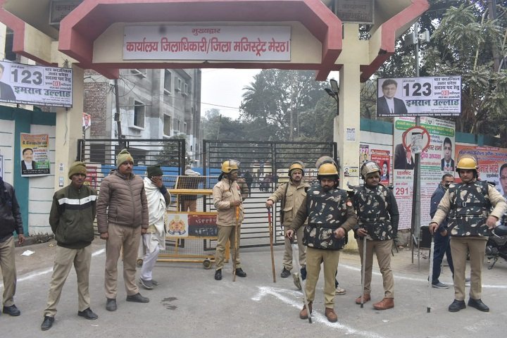 छावनी में तब्दील हुआ मेरठ कमिश्नरी चौराहा