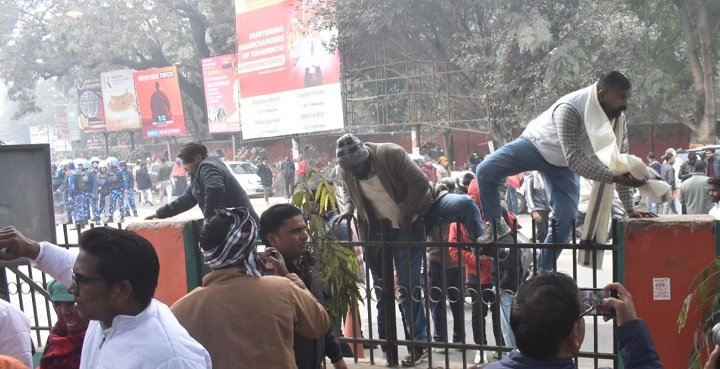 पुलिस के अनुसार, जिले में निषेधाज्ञा लागू होने के बावजूद भीड़ एकत्र होने पर उन्हें समझाने का प्रयास किया गया, लेकिन लोगों ने पुलिस की बात नहीं मानी। स्थिति बिगड़ने पर अतिरिक्त पुलिस बल तैनात किया गया। आरोप है कि इस दौरान कुछ लोगों ने पुलिस से धक्का-मुक्की की और अभद्रता की, जिससे मौके पर अफरा-तफरी का माहौल बन गया।