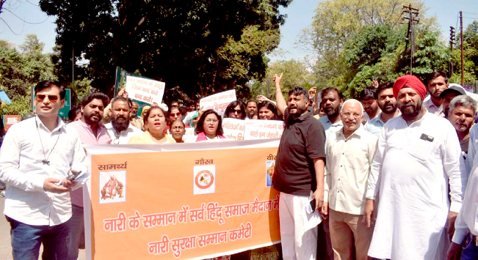 शारदा रिपोर्टर मेरठ। पार्लरों, जिम, लेडिज टेलर और अन्य जगहों पर महिलाओं की सुरक्षा सुनिश्चित करने एवं आवश्यक नियम लागू कराने की मांग को लेकर बुधवार को नारी सुरक्षा सम्मान कमेटी के सदस्यों ने कमिश्नरी चौराहे पर प्रदर्शन किया।