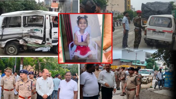 Meerut Accident News: मेरठ में कंकरखेड़ा के नगला तहसील में आर्मी स्कूल की एक वैन में तेज रफ्तार डीसीएम ने जोरदार टक्कर मार दी, हादसे में 10 साल की मासूम की मौत हो गई जबकि कई बच्चे घायल बताये जा रहे हैं।