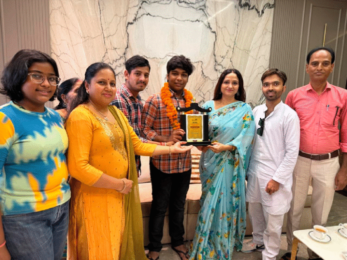 सोमवार को सारथी संस्था ने कल्याणनगर स्थित आवास पर सारथी संस्था की अध्यक्ष कल्पना पांडेय के नेतृत्व में संस्था के पदाधिकारियों ने वेदांश गर्ग को मोमेंटो देकर माला पहनाकर स्वागत किया।