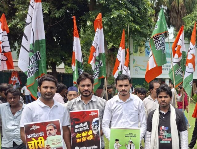 मेरठ। लोक सभा में नेता प्रतिपक्ष राहुल गांधी द्वारा चुनाव आयोग के विरुद्ध वोट चोरी के आरोप प्रेस वार्ता में दिखाने के बाद विपक्षी पार्टी लगातार हमलावार है जिसको लेकर आज भारतीय राष्ट्रीय युवा कांग्रेस के आह्वान पर मेरठ जिले से युवा कांग्रेस प्रदेश महासचिव मुदब्बिर अली के नेतृत्व में युवा कांग्रेस के पदाधिकारी कार्यकर्त्ता भारी संख्या में दिल्ली प्रदर्शन में शामिल हुए।